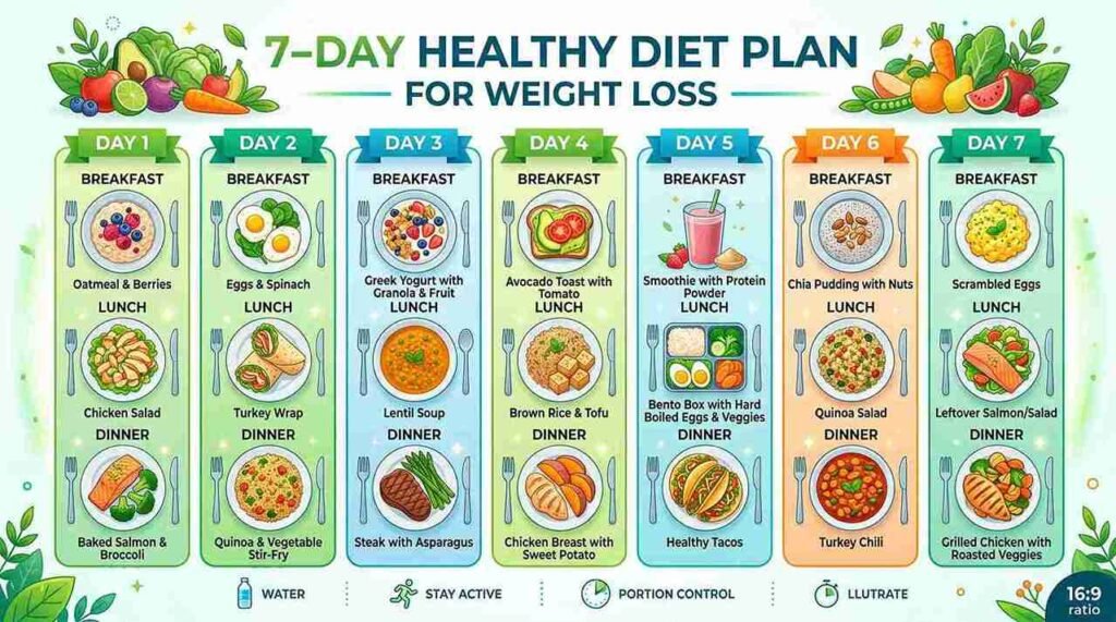 Here is a simple and effective weekly diet plan recommended by nutrimealfood that you can follow: